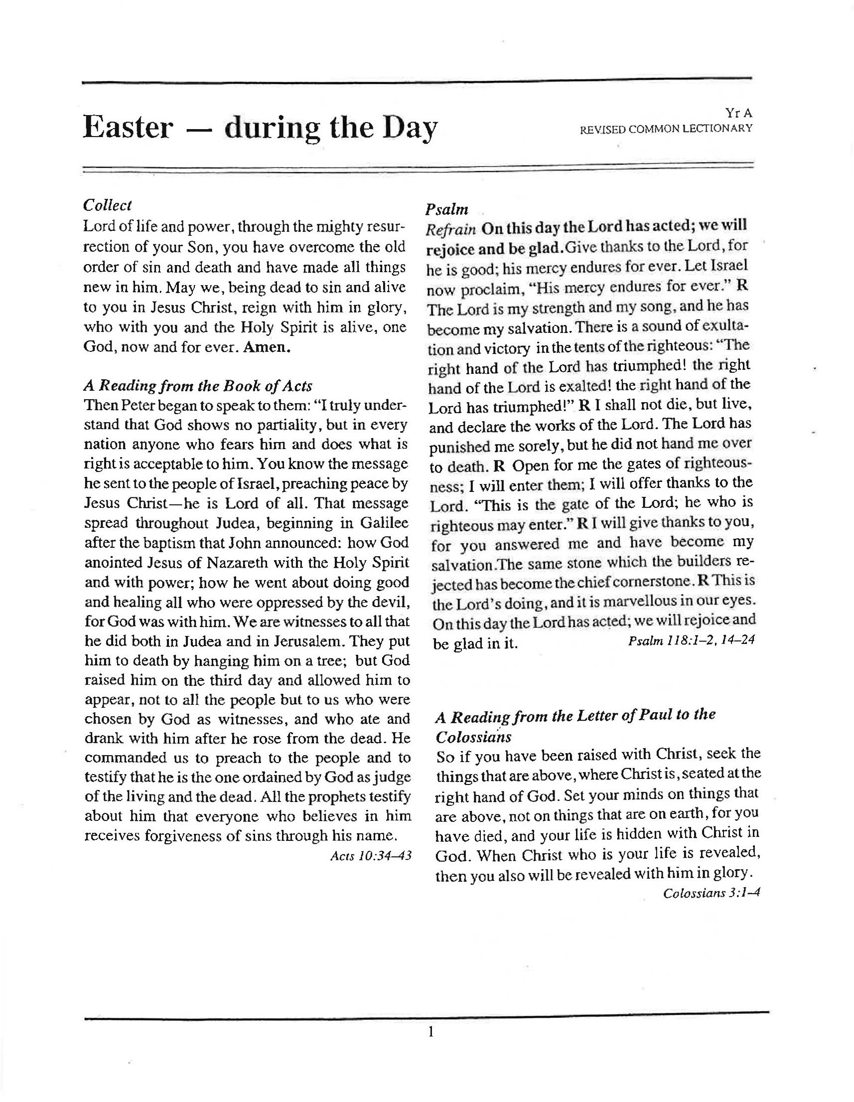 April 5th Easter Day 8:30 am and 10:30 am service.