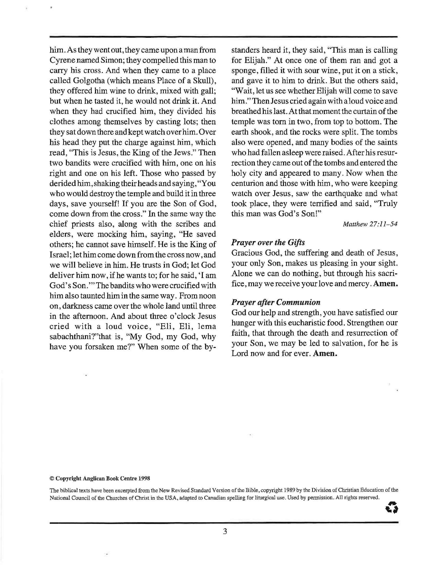 April 3rd Good Friday 11:00 am Commemoration of the Lord's Passion.