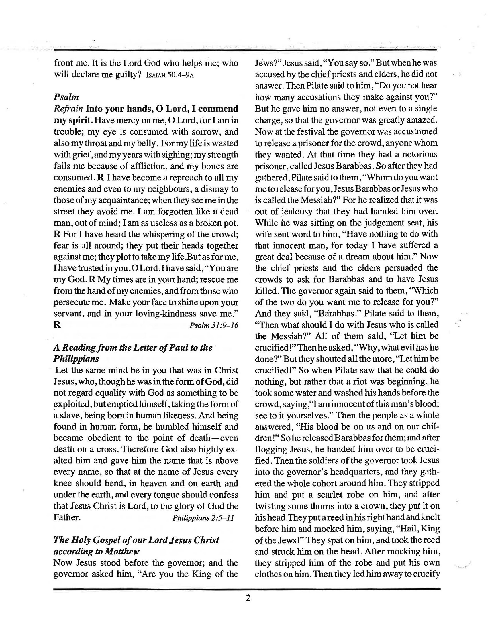 March 29th Palm Sunday with distribution of palm crosses at both services.